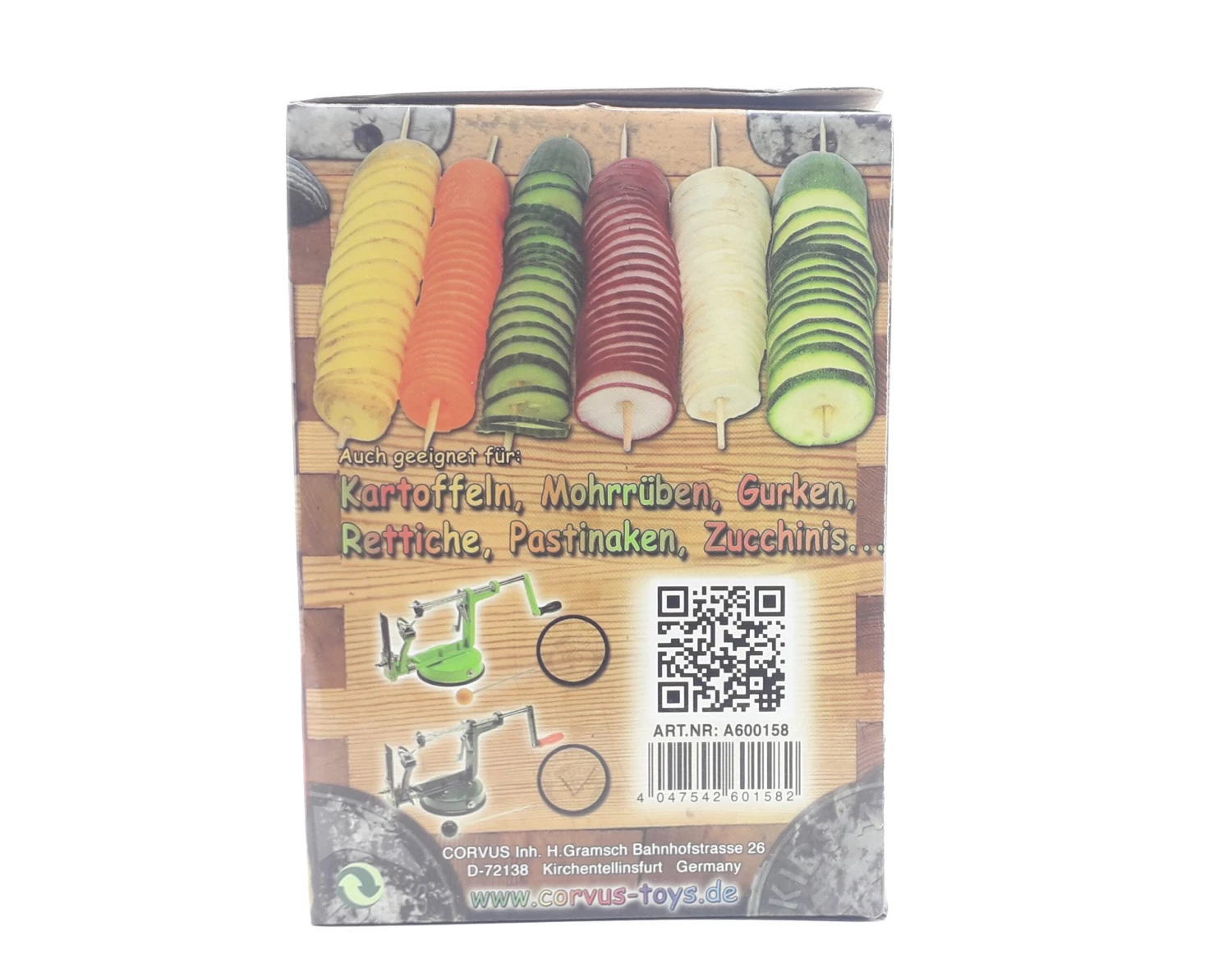 Kartoffeln werden in dünne Spiralen geschnitten. Anschließend frittiert oder in der Mikrowelle gechipt.