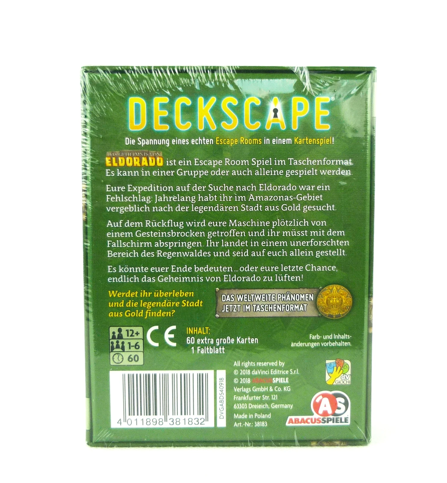 Deckscape – Die Spannung eines echten Escape Rooms in einem Kartenspiel! – Es kann in einer Gruppe oder auch alleine gespielt werden.