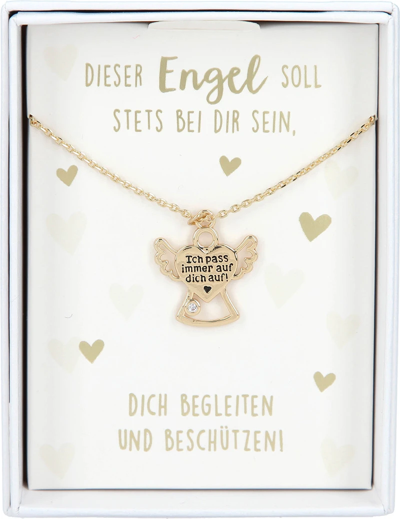 Eine Kette mit guten Wünschen und Schutzengel-Funktion: Die filigranen Ketten mit superniedlichen Anhängern (Herz, Schutzengel, Engelsflügel) kommen jeweils in einer kleinen Geschenkbox mit persönlicher Botschaft.