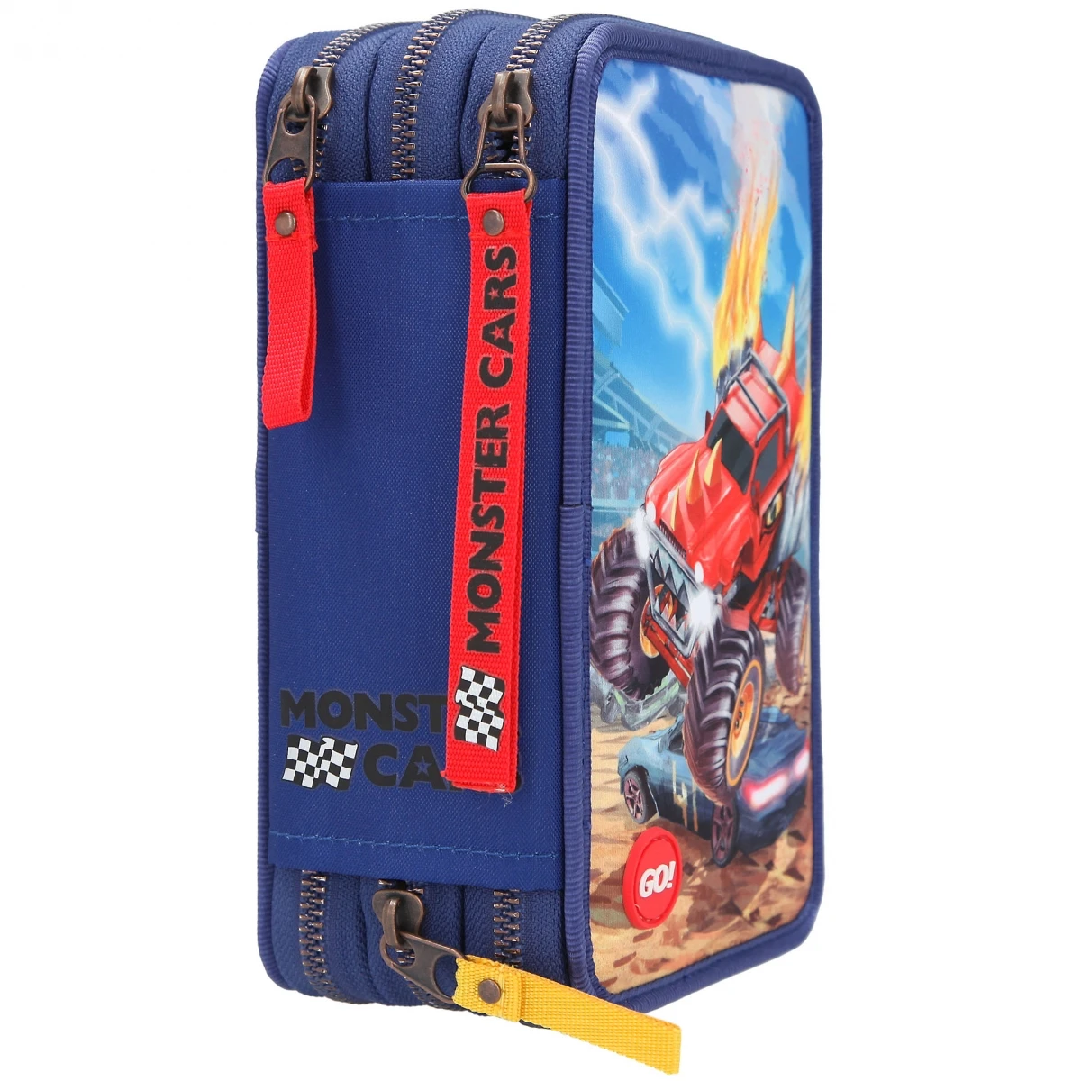 Die blaue LED-Federtasche von Monster Cars ist außen und innen der Hammer: